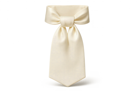 Elegant ivory silk cravat tie isolated on transparent background, formal wear