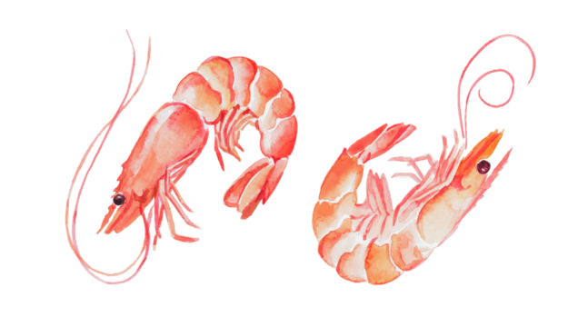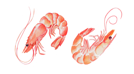 Shrimps , seafood, crustacean , watercolor , food illustrations, hand painted