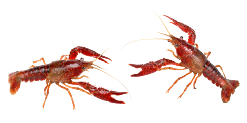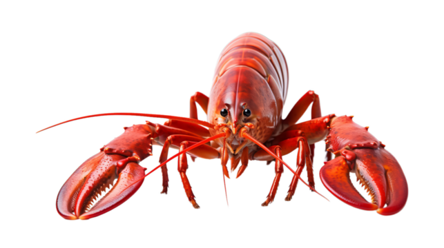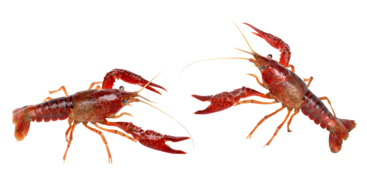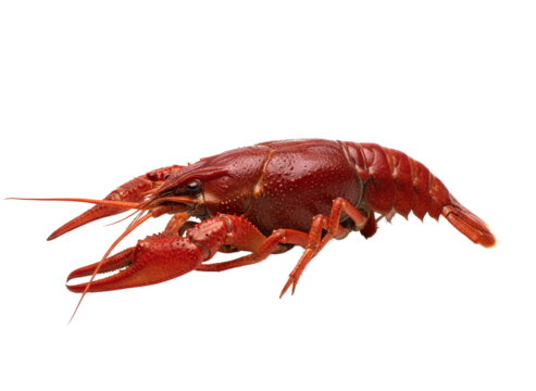 A close-up view of a vibrant crawfish showcasing its intricate features and textures isolated on transparent background