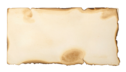 A rectangular parchment sheet with burnt edges, against a stark black backdrop