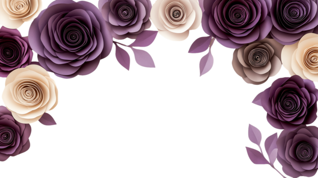 Paper Flowers Purple Beige Cream Floral Arrangement on Transparent Background, PNG