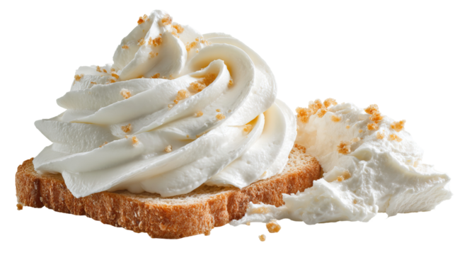 single slice of toasted bread spread with cream cheese isolated on transparent background