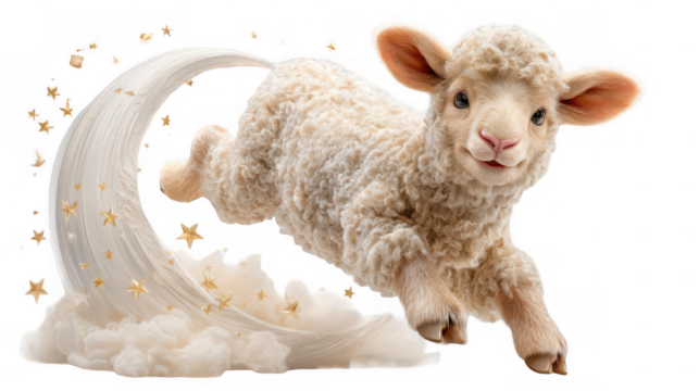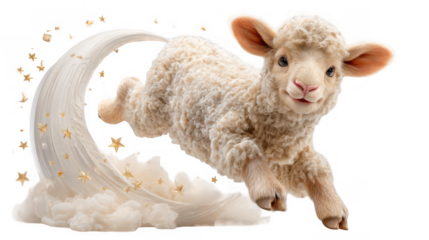 A playful scene with small, cotton-like white clouds scattered across a sky filled with bright on transparent png background. Ai generated