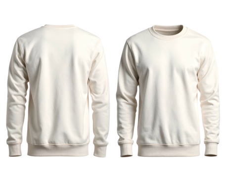 Front and back view of a tan and cream varsity jacket isolated on transparent background