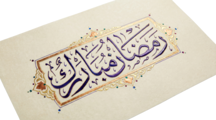 Arabic calligraphy script displayed on a cream colored surface with faint shadows visible in the background isolated on white