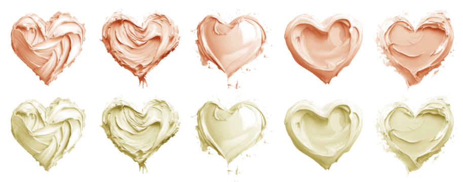 texture of a cosmetic smear of cream in the shape of a heart on a transparent background