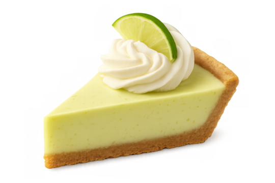 Key lime pie slice with whipped cream isolated on transparent backdrop, sweet