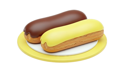 Two Eclairs, Chocolate and Yellow, on a Plate