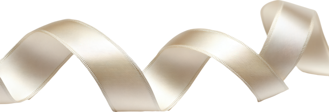 Elegant Cream Satin Ribbon Bow with Flowing Tails, Symbolizing Celebration, Gifting, and Sophistication
