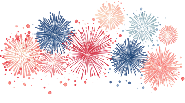 Colorful fireworks display with vibrant bursts in pink, blue, and cream shades, perfect for celebrations.