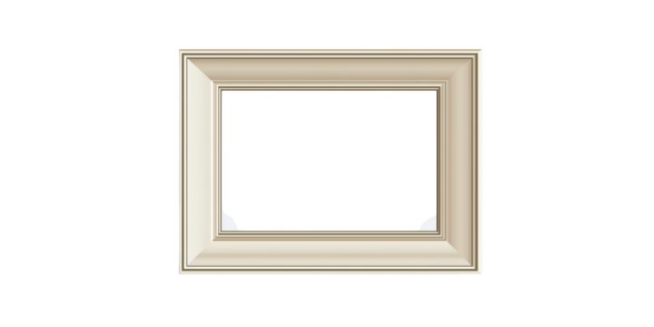 Ornate cream colored rectangular picture frame with subtle gold trim isolated on a transparent background