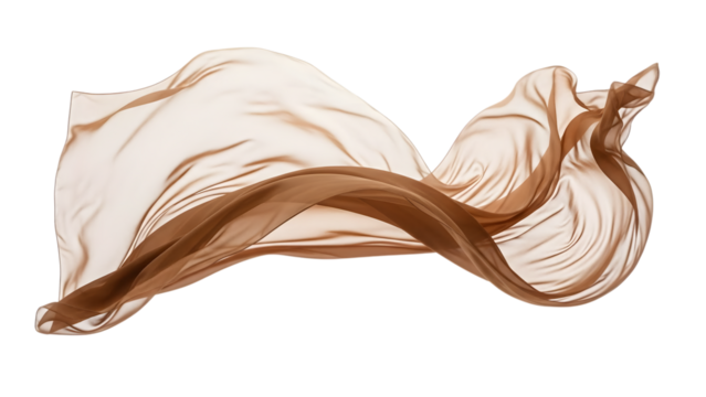 Flowing beige and brown fabric with wavy folds and creases isolated on a transparent background