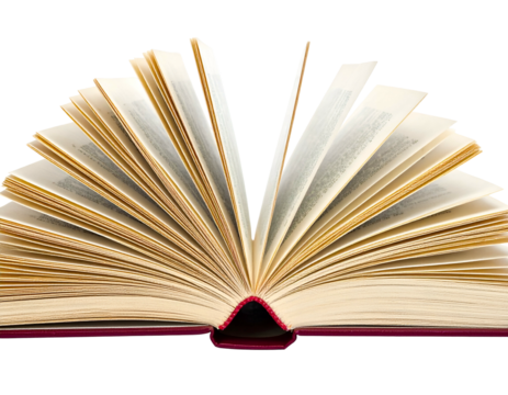 Open book with fan-like pages, spine visible, isolated against a transparent backdrop