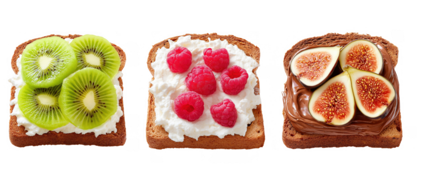 Toast with kiwi, raspberries, and figs, created AI, PNG