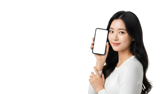 Sleek minimalist modern smartphone device with a blank white screen, perfect for showcasing mobile application interfaces, website designs, and digital content presentations