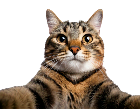 Cat, selfie, white background—this natural and isolated photo captures a curious feline taking a selfie. Perfectly lit, ideally framed, and charmingly expressive, it’s a fun and versatile visual asset