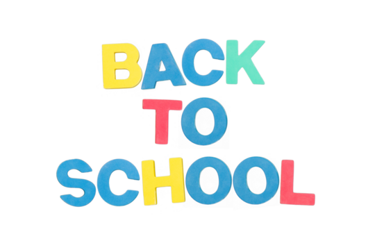 White text 'back to school' on transparent background for promotional use