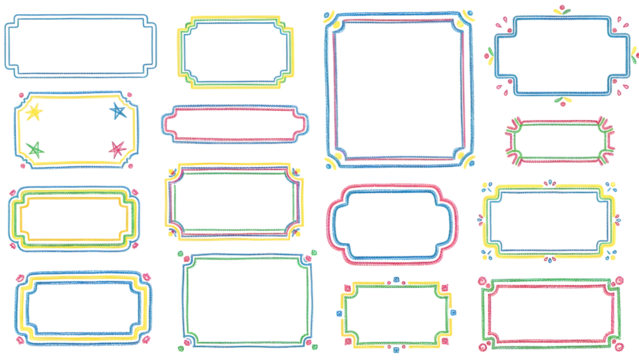 A vibrant collection of diverse digital frames featuring colorful pixelated borders and unique shapes for creative graphic design