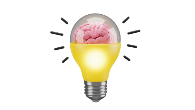 Creative light bulb with brain inside isolated PNG, concept for ideas, innovation, and intelligence on transparent background