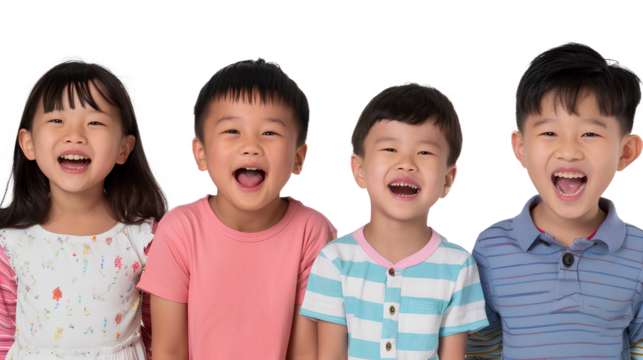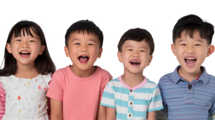 Cute transparent illustration of happy children's faces with cheerful expressions