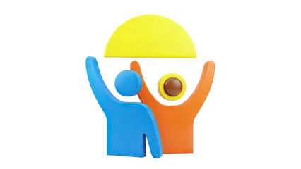 Abstract figures holding a yellow semi-circle