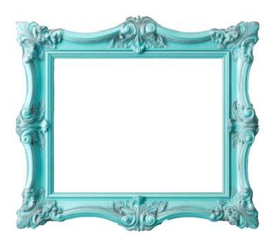 Turquoise vintage ornate picture frame isolated. Decorative art and design concept