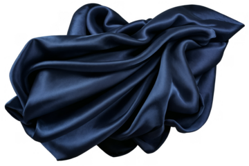 High-quality image of luxurious navy blue satin fabric, perfect for a transparent, white background, png, and fashion projects