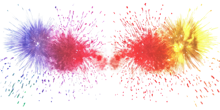 Colorful paint explosion, abstract background, isolated on transparent background