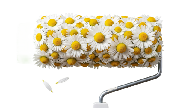 Paint brush with yellow paint dripping, representing home renovation, diy projects and creative art