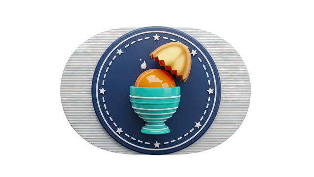 3D Rendering of a Cracked Egg in an Egg Cup with Stars Border