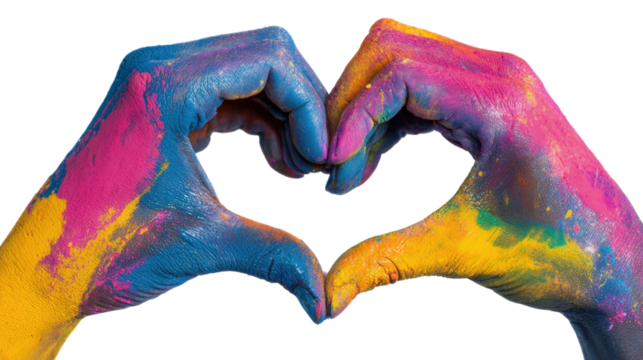 Colorful Hands Forming Heart Shape on Transparent Backdrop