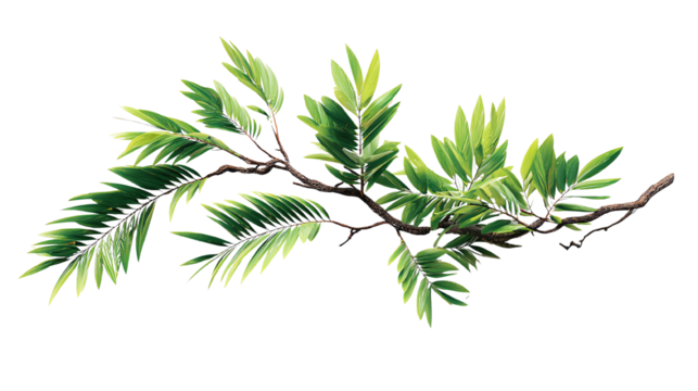 Green leaf branch isolated on a white background for creative design or nature-themed projects.