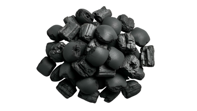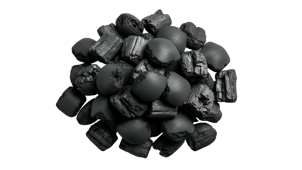 Black and Gray Charcoal and Clay Pieces Arrangement on Transparent Background
