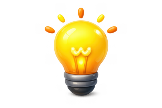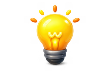 Creative yellow lightbulb icon on transparent background