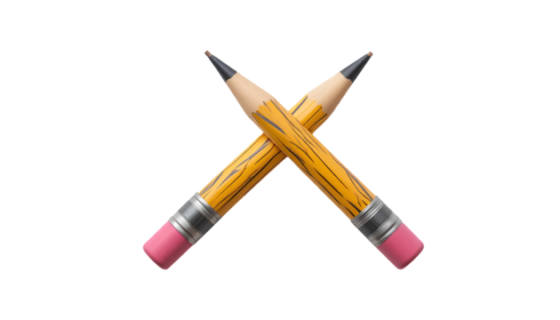 Crossed Pencils Illustration – Minimalist Flat Vector School Supplies Design isolated on transparent background