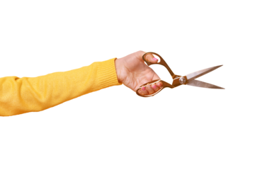 Gray-toned hands cutting US dollar banknotes with scissors in a contemporary art style, isolated on transparent background. Creative concept about finance, economy and money