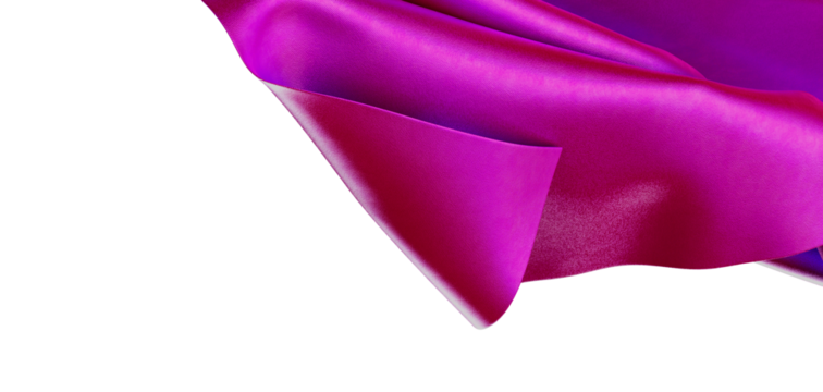 Close up shot of flowing shiny pink and purple fabric, isolated on white background. Perfect for elegant, luxury, or fas