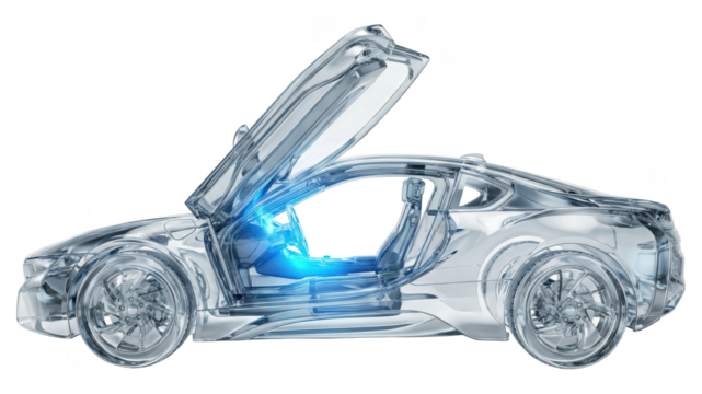 Modern office building with glass facade and brick exterior isolated on transparent background
