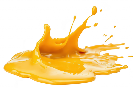 Vivid splash of yellow paint creating dynamic movement against a white background. ideal for art projects. design concepts. and creative promotional materials