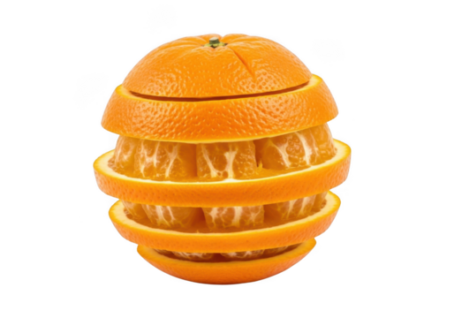 Fresh orange slices arranged creatively on a clean background. transparent background