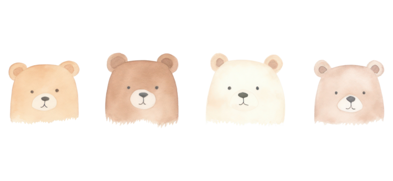 PNG Cute tiny 5 bear heads divider watercolour illustration mammal animal white background.