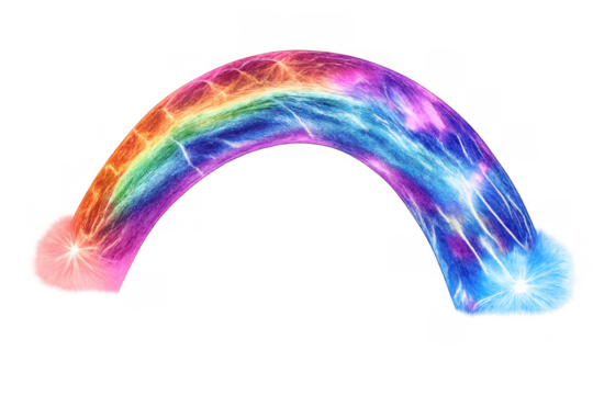 Rainbow magic portal generating light and electric energy, colorful glowing arc with spark effects
