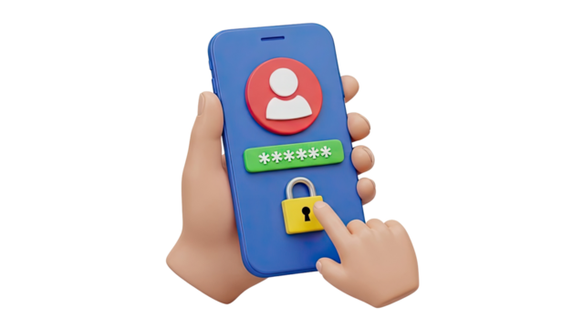 3D Render of Hands Holding Smartphone with Security Login Screen