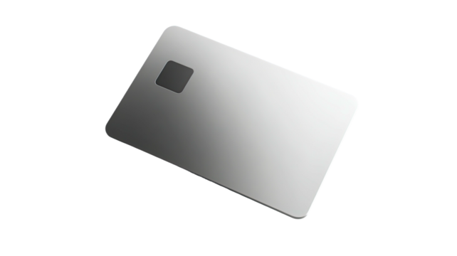 A gold colored credit card with a silver stripe. The card is rectangular in shape and has a gold color