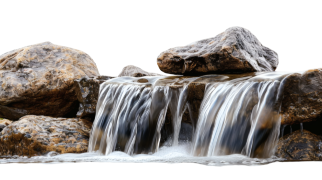 Vibrant Natural Waterfalls Lush Greenery Rocky Stream Serenity isolated on transparent background.