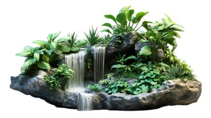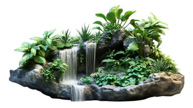 Isometric 3D jungle terrarium: creeping fig vines, air plants, and a tiny waterfall. Clean white backdrop- Image #3