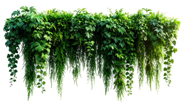 Green ivy vine isolated on transparent background, close-up of climbing plant with fresh leaves and twisting stem, perfect for botanical design, nature decoration, and eco stock photography