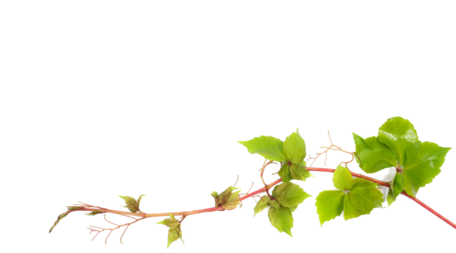 Green vine with fresh leaves growing, draping, and creating a natural frame. Transparent background element for design