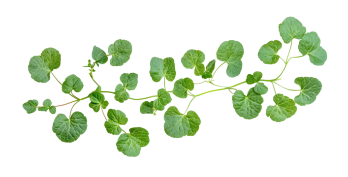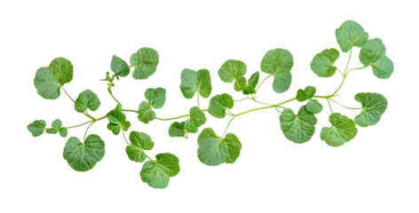Lush green plant vine growing with broad leaves on transparent background, symbolizing nature and growth
