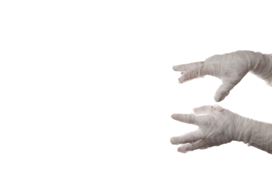 Three decaying zombie hands reaching out from a transparent background, creating a spooky and eerie atmosphere